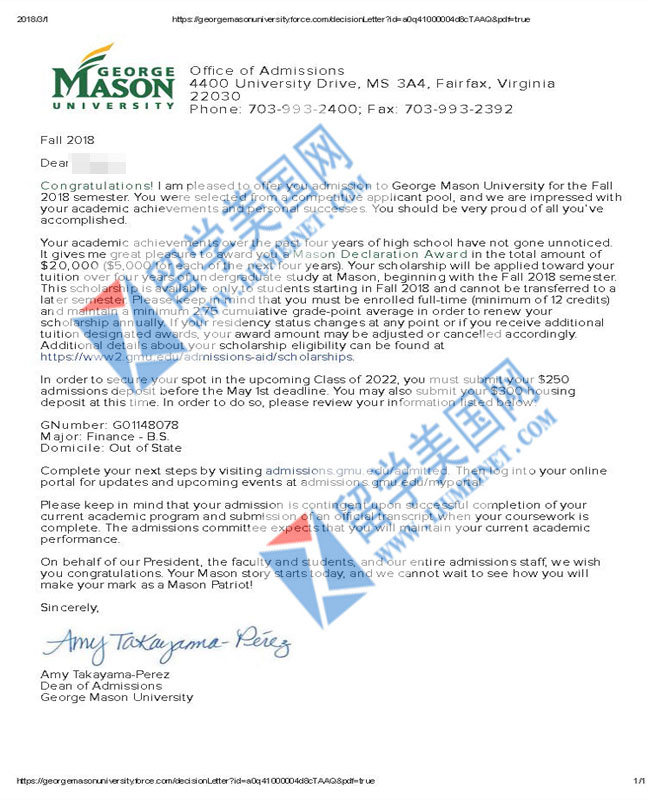恭喜司徒同学获得George Mason University 录取offer!并获得2万美金奖学金!