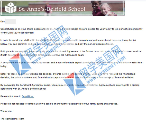 刚刚得到一个好消息!留美网同学成功补录到 St.Anne's-Belfield School (寄宿排名53,全美排名203),补录阶段时间非常的紧急,留美网从接到这个Case之后,一直加班加点,帮学生争取到了面试机会,又紧急做了面试培训,最终帮学生拿到了录取!在这里感谢留美网全体员工的努力和付出,祝留美网同学在美国前程似锦!学业有成!目前这个学校还有少量名额,咨询热线:400-000-7805,010-65183908,微信:liumeinet2014