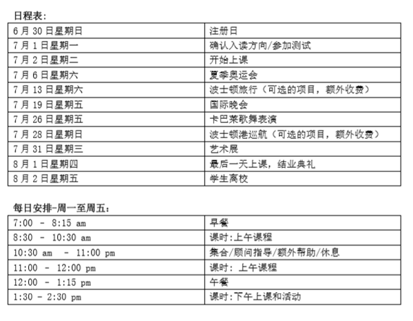 夏校日期: