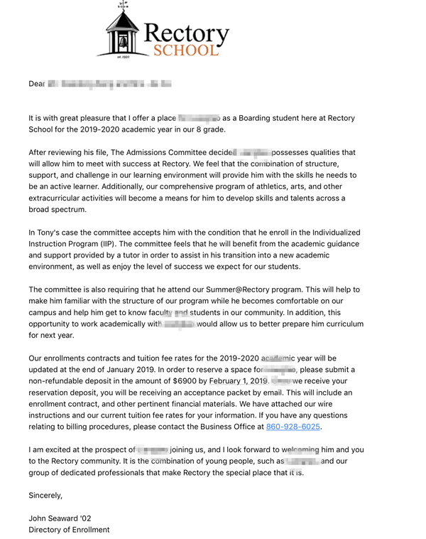 成功案例:恭喜S同学喜获瑞克特瑞中学Rectory school录取offer