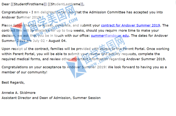 恭喜留学美国网Z同学,在不到2周的时间里,拿到了菲利普斯安多佛中学Phillips Academy Andover夏校offer。