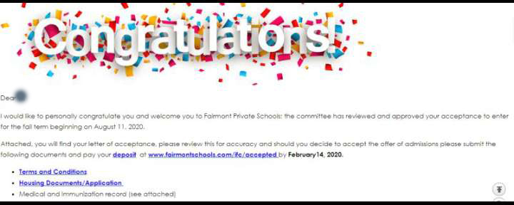 家长的支持也使得该同学获得成功,文书部分在需要家长配合的时候,家长总能在第一时间把孩子的申请作为第一要务,放下手里的活,先帮忙提供所需材料,最终在我们大家共同的努力下,孩子顺利获得心意学校的Offer。