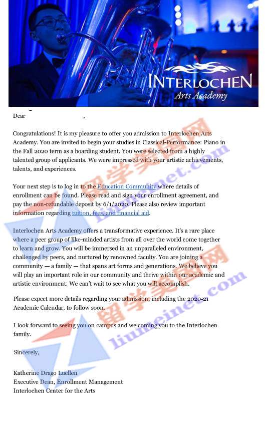 补录捷报!恭喜留美网L同学补录到劳伦斯中学!