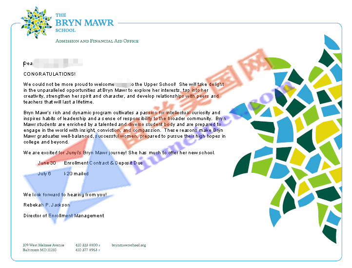 申请过程中,刘同学和她的家庭都和留美网密切联系配合,最终获得了她梦想中女校的录取,成为一名Byrn Mawr Girl!恭喜刘同学~