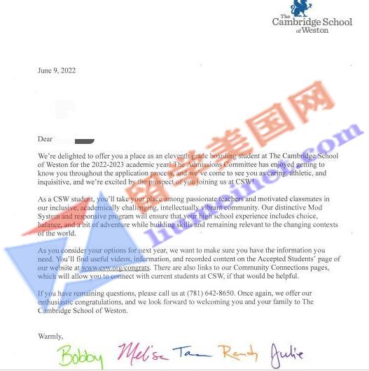 录取学校:威斯顿剑桥中学The Cambridge School of Weston