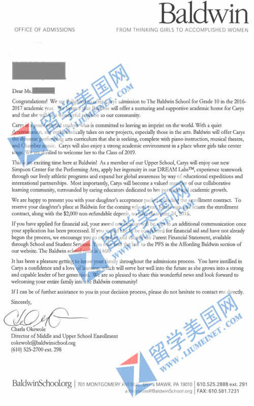 恭喜C同学成功补录到顶尖高中Moses Brown School!这个offer来之不易!凝聚了留美网全体员工的努力和付出!留美网团队用认真的态度,真诚的服务对待每一个孩子!在这里衷心祝愿C同学在美国学业有成!