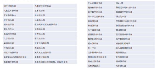 乐部和活动,保证学生有多种选择。