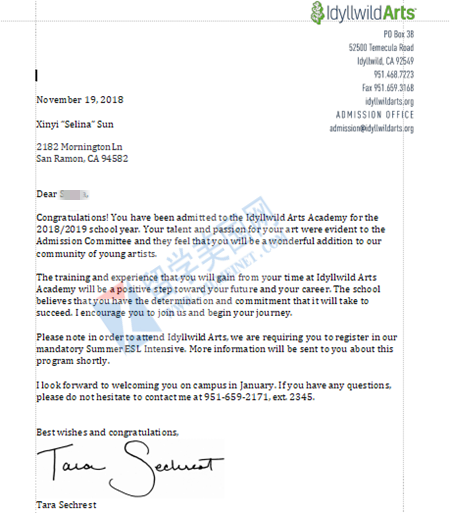 2.2019年毕业生录取优秀,伯克利音乐学院7人、加州艺术学院3人、伊士曼音乐学院4人、芝加哥艺术学院9人等,留美网毕业学生最后被英国圣马丁大学录取。