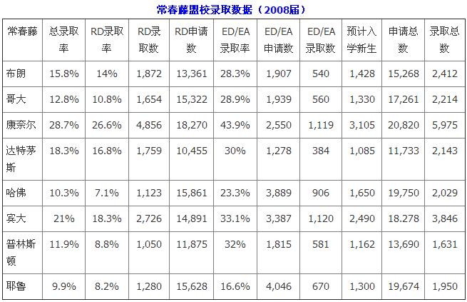 美国常青藤大学的录取率分析: