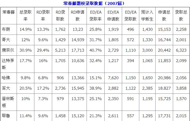 由于数据比较多,常春藤盟校11年录取数据我会分几篇文章发布给大家,下面是2007—2009届数据
