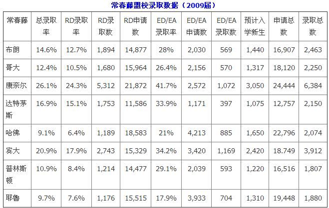 常春藤盟校11年录取数据(2007—2009届)