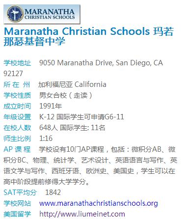 学校: Maranatha Christian Schools 玛若那瑟基督中学