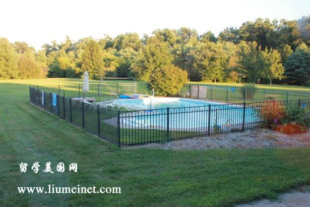 这是他们的游泳池,外面是一曾绿油油的地毯,不远处参天大树层层环绕,好一个优美的去处!