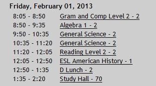 已经养成了一个习惯,每天都要登陆学校网站去查看一下孩子一天的学习和生活情况,逐步掌握了一些美国学校的教学规律与计划安排。下面就任意选取其中的一天做一个简要记录,以备若干年后回忆之用吧。