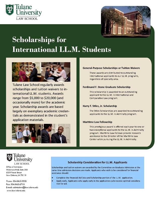 LLM in International & Comparative Law - The breadth and depth of the comparative and international law curriculum at Tulane Law School provide an unparalleled opportunity for lawyers interested in the area. The international and comparative law program at Tulane emphasizes the distinctiveness of regional legal systems, national legal development, and the more traditional differences between major legal cultures. Please follow this link to review our LLM program view book and this link to view our International & Comparative Law brochure.