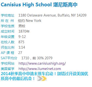 推荐理由: Canisius High School 堪尼斯高中是一所位于东部纽约州的私立走读男校,学校高级教师比高达98%,目前国际生一共只有5人,历史悠久,建于1870年。另外,学校设施先进,AP数量高达24门,TOP30%SAT平均分高达2000多分!下面是学校超棒的大学升学!