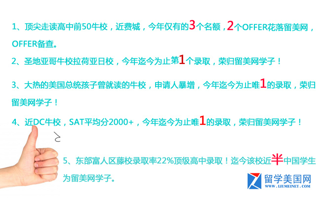 分享会寄语:留学美国网顶尖走读高中录取已经基本结束,值得骄傲的是,这个高端录取季,留学美国网创造了几个奇迹,这些奇迹让我们与您分享: