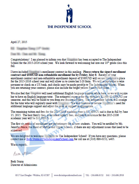 恭喜XXZ同学转学到堪萨斯州州内最牛高中独立学院!