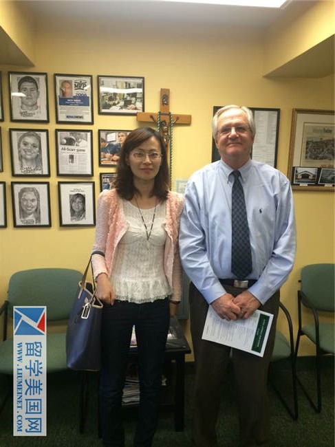 留学美国网石老师与德保罗高中招生官。(考察详情)