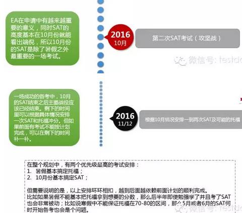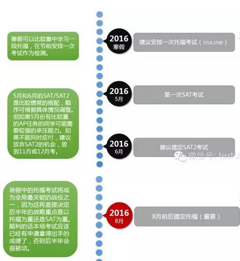 但需要说明的是,以上安排环环相扣,越到后面越依赖前面计划的顺利完成。比如如果暑假不能基本把托福拿到想要的分数,那么后半年即使勉强学了并且考了SAT也会非常被动;比如说寒假中不能保证托福在70-80的区间,那么5月或者6月的SAT何时开始备考也会是个问题。