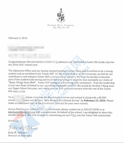恭喜ZH同学获得美国TOP50美高牛校-塔山中学录取!