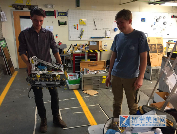 石老师拜访的第二天学校机器人俱乐部的3个队将去格尔伯勒参加本州比赛(照片上的两个男孩是机器人团队成员),然后再去圣路易斯大学参加世界机器人大赛。