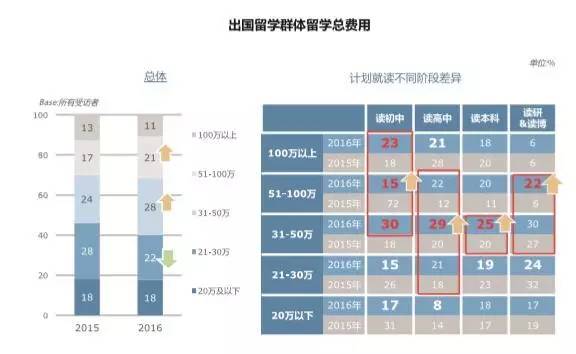 2015年-2016年的留学总费用更是进一步上升: