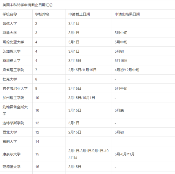 去美国留学是每个人的梦想,转学因此成为了一个很常见的现象,有的学生开始上的是社区大学,想转到综合性大学或者优质的文理学院,这样就要求每个学校都清楚,在大学本科转学的时候,每个学校的截止日期,今天就请留美网(www.liumeinet.com)的小编为大家做具体的介绍,希望可以帮到大家!