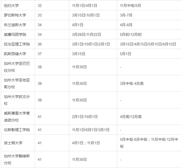 美国大学本科转学申请截止时间汇总