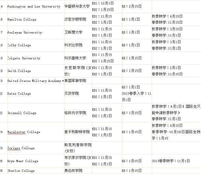 TOP50美国文理学院申请截止时间