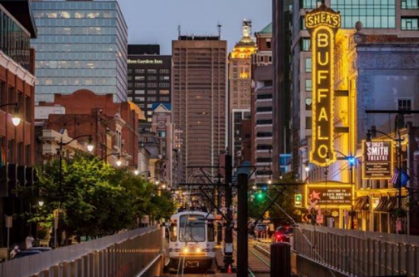 布法罗在纽约州的西北方,位于伊利湖东端、尼亚加拉河的源头。得益于尼亚加拉瀑布的发电厂,成为北美洲第一个大规模供电的城市。在20世纪初期,由于地处五大湖区与伊利运河的交界,吸引了來自爱尔兰、意大利、德国和波兰在钢铁及面粉业工作。今日布法罗正抛掉过去工业城市的形象,重新自我定位为文化、教育和医疗中心。2005年被《读者文摘》选为美国最清洁城市第三位。2001年被《今日美国報》选为「美国最友善城市」。在1996年及2002年赢得全美城市奖。