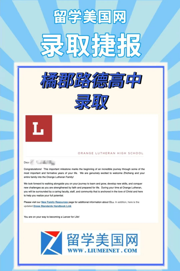 橘郡路德高中成立于1973年,是一所私立走读混校,位于南加州旧金山地区,Orange Lutheran High School提供了全美国认可的优秀课程是南加州最好的私立学校之一。该校距离洛杉矶40分钟车程,距离尔湾18分钟。附近有加州大学尔湾分校,好莱坞和迪士尼距离学校也很近。