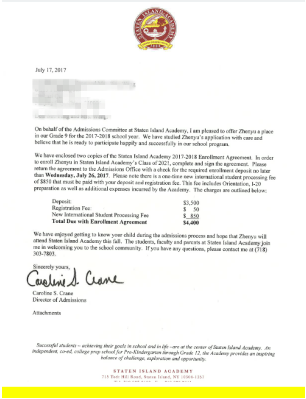 石老师有幸走访了纽约州Staten Island Academy学校,招生主任热情的接待石老师,并介绍了学校的情况。学校位于斯泰顿岛的富人区,距离曼哈顿开车30分钟路程,学校面积不大但感觉很温馨。学校特色项目是科学、艺术和音乐。学校每年大约有80所美国大学来学校招生和做推广工作。学生对哪所大学感兴趣,学校来主动推荐和招生官见面和沟通。