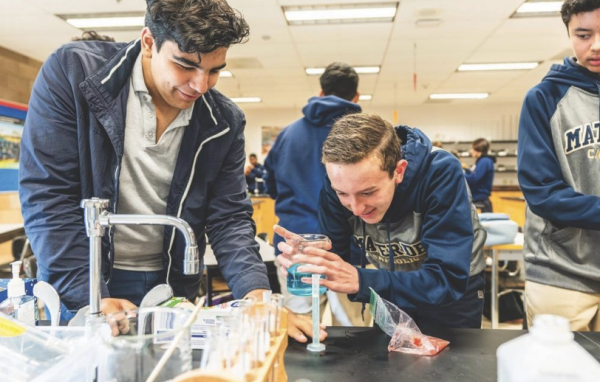 Mater Dei Catholic High School课程体系全面而富有挑战性,旨在培养学生的学术能力、创新思维与社会责任感。学校共开设30多门AP与荣誉课程,涵盖英语、数学、科学、社会学、艺术、语言等多个领域,平均ACT成绩达31分。核心课程包括AP微积分、AP物理、AP美国历史、荣誉英语及双学分心理学等。学校拥有独特的“三年制科学学院(Academy of Science)”,学生可在UCSD、USD等大学教授指导下参与科研与实习项目;“社会创业(Social Entrepreneurship)”课程由科技公司前CEO授课,学生通过六个项目模块学习商业计划、产品设计与创新思维。所有高年级学生须完成“Senior Capstone Project”毕业研究,以整合学术与实践能力。课程同时重视艺术与语言培养,提供视觉艺术、音乐、戏剧、数字摄影、法语及西班牙语AP课程,真正实现全面教育与多元发展。