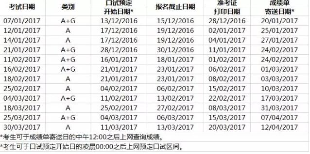 2017年1月-3月雅思考试时间表