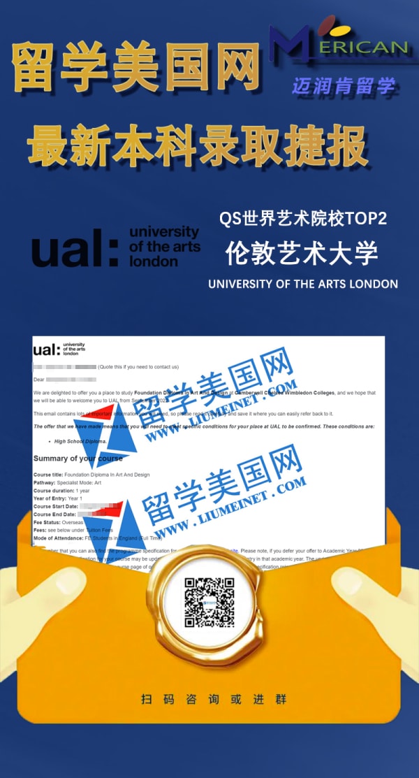 大家好!2021年过去了,留学美国网感谢各位朋友的陪伴与信任。2022年已经向我们走来,在留学美国网全体同仁的努力下,在与众多家长和学生的共同努力下,留学美国网的学生取得了许多优质学校录取!让我们对拿到录取的同学和家庭致以最诚挚的祝福! 祝贺留学美国网C同学获得伦敦艺术大学录取! 祝贺留美网C同学成功收获University of the Arts London录取 伦敦艺术大学(University of the Arts London),简称“伦艺”(UAL) 前身为伦敦学院 (The London Institute) 1986年成立于英国伦敦,采用书院联邦制。UAL将世界上最著名的致力于艺术、设计,表演等相关领域的多所建于十九世纪的古老艺术学院联合。2019QS世界大学排名艺术与设计排行榜世界第2名,本科世界排名第1名。2019-2021年连续三年蝉联QS世界大学排名艺术与设计排行榜世界第2名。再次恭喜C同学得偿所愿收获University of the Arts London录取! 祝贺留学美国网Z同学获得多伦多大学录取! 祝贺留美网Z同学成功收获University of Toronto录取 多伦多大学 (University of Toronto,简称UofT,UT),始建于1827年,坐落在加拿大第一大城市多伦多,起源于公元1827年的国王学院King's College。是世界著名公立研究型大学,享誉全球的顶尖高等学府,主校区(简称UTSG)位于多伦多市中心,校园环绕安大略省政府与皇后公园。 让我们再次恭喜留美网Z同学,希望他可以在多伦多大学收获属于自己的成长~ 祝贺留学美国网S同学获得萨凡纳艺术学院录取! 祝贺留美网S同学成功收获Savannah College of Art and Design(SCAD)录取 在2020年最新QS世界大学排名艺术与设计类专业中该校位列全球第36位。优势专业包括全球排名第一的动态媒体设计,全美排名第一的室内设计,以及同样持续为迪士尼动画和皮克斯动画,梦工厂等全球顶级动画公司注入毕业人才的动画专业,时装设计,平面设计,工业设计等享誉美国。让我们再次恭喜留美网S同学! 祝贺留学美国网C同学获得南安普顿大学录取! 祝贺留美网C同学成功收获University of Southampton录取 关于留美网2022年优质美本录取就为大家分享到这里了,想要申请大学留学的朋友可以持续关注留学美国网!