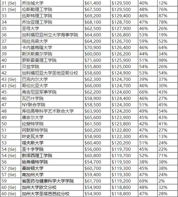 2018美国大学毕业生薪酬排行top100