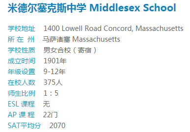 学校于1884年成立在马萨诸塞州的格罗顿,是一所非常着名的男女合校的寄宿学校,占地415英亩。是马萨诸塞州最佳基督教高中,平均SAT:1420,学生人数:368,师生比例:5:1,学术多样性,AP课程22门,格罗顿中学GrotonSchool校园活动丰富,学校重视学生领导能力的培养,关注每一个学生的性格发展。不仅仅局限于为学生上大学准备,而是始终为学生提供一个交流经验的平台,学校治学严谨,远远超出了大学的要求,注重每个学生的个人成长和发展。