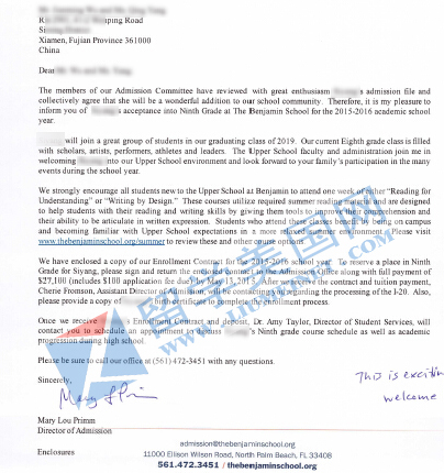 恭喜CZX获得本杰明学校录取offer