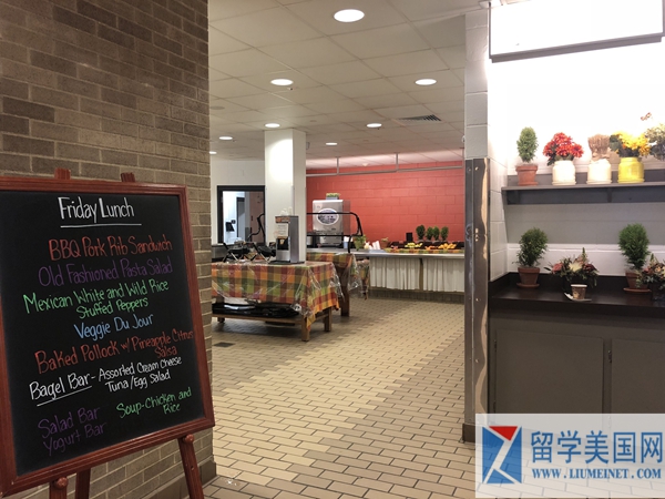 Canterbury School的餐厅,黑板上写着午餐种类