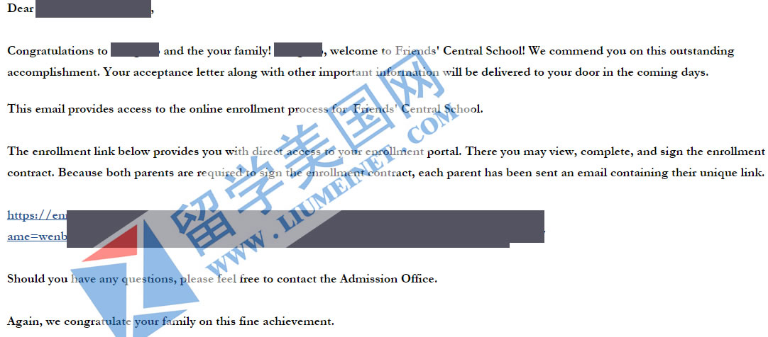 恭喜留学美国网L同学获得顶尖高中贵格中央学校录取!孩子几经波折,终获顶尖高中录取!