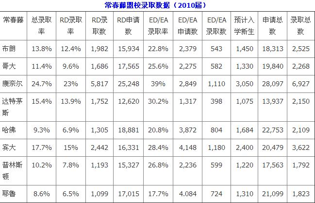 由于数据比较多,常春藤盟校11年录取数据我会分几篇文章发布给大家,下面是2010—2011届数据