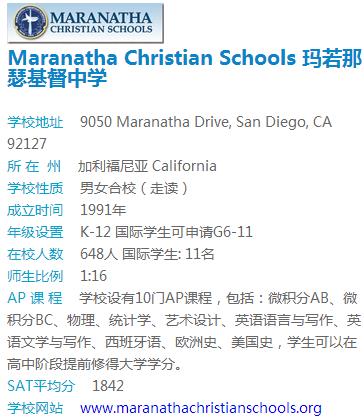 Maranatha Christian School也是一所年轻的学校,建于1991年,在校生600多人,高中生100多人,占地17.9英亩。下面是学校的一个基本数据。