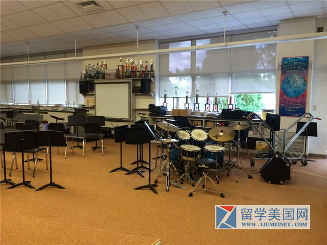 音乐室,学校的音乐表演很棒,奖杯罗列在教室的桌上。
