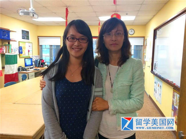 石老师与学校中文老师的合影,她毕业于哈佛大学教育学院。