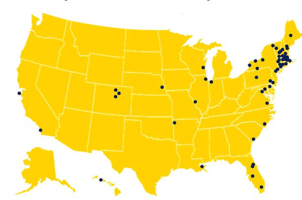 波士顿大学 波士顿学院 芝加哥大学 达特茅斯学院 伍斯特理工大学 东北大学 范德保大学 乔治敦大学 弗吉尼亚大学 塔夫茨大学 纽约大学 威廉玛丽学院 华盛顿大学