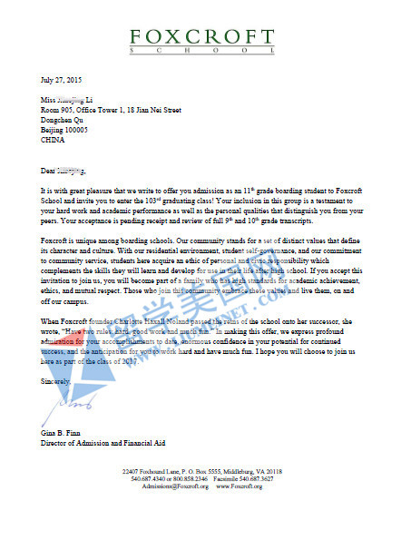 恭喜XJ同学7月获顶尖寄宿高中 Foxcroft School补录!在孩子没有推荐信的情况下,一周成功获得录取!