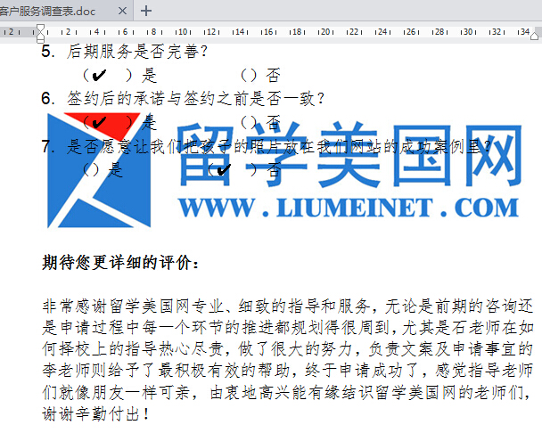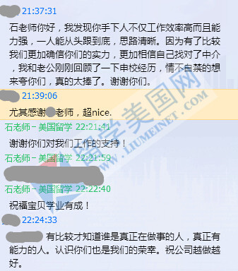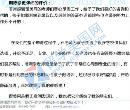 留美网再次感谢来自全国各地的家长和同学们对我们的信任,其中很多客户甚至没有来过北京办公室。留学美国网的同仁们会更加努力,提升服务质量,把工作越做越好!