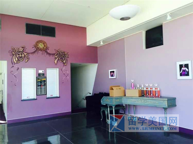学校的戏剧非常棒,有相关爱好的同学可以考虑该校。上图墙壁上挂的是学校戏剧表演的照片。