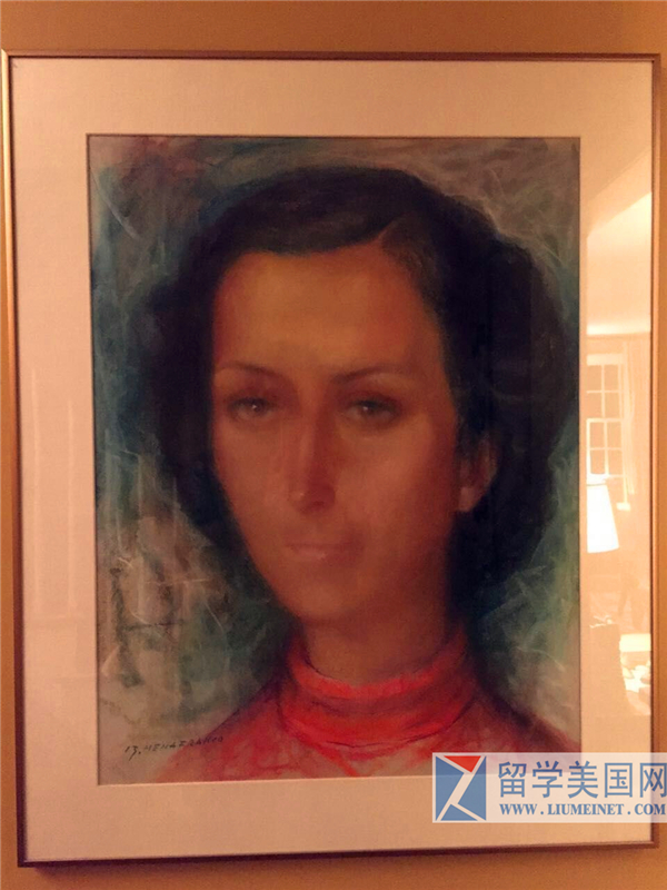 寄宿家庭的爸爸是校长,妈妈是大学老师。墙上挂着的是女主人的画像.